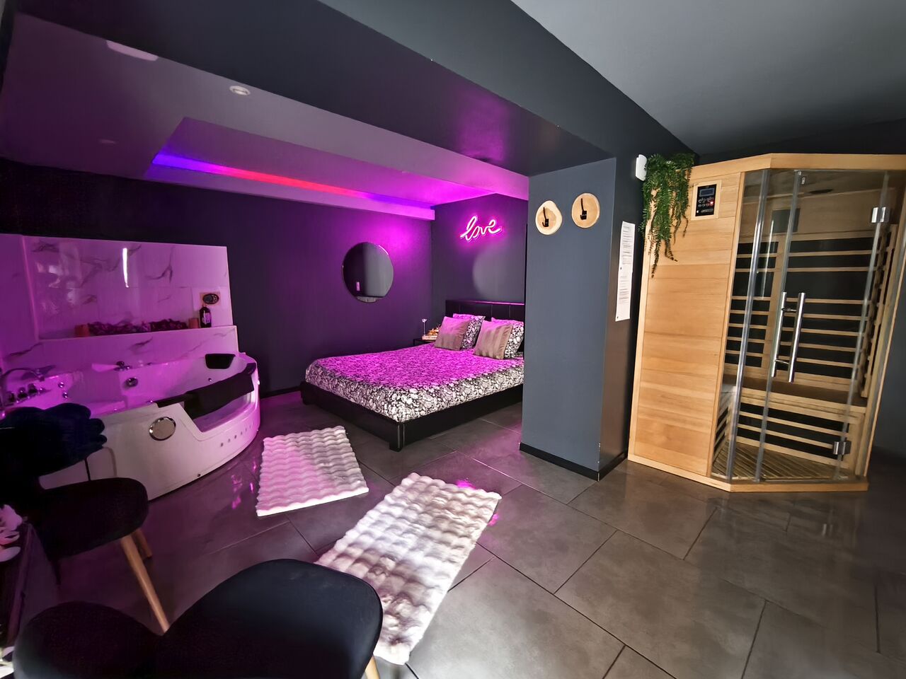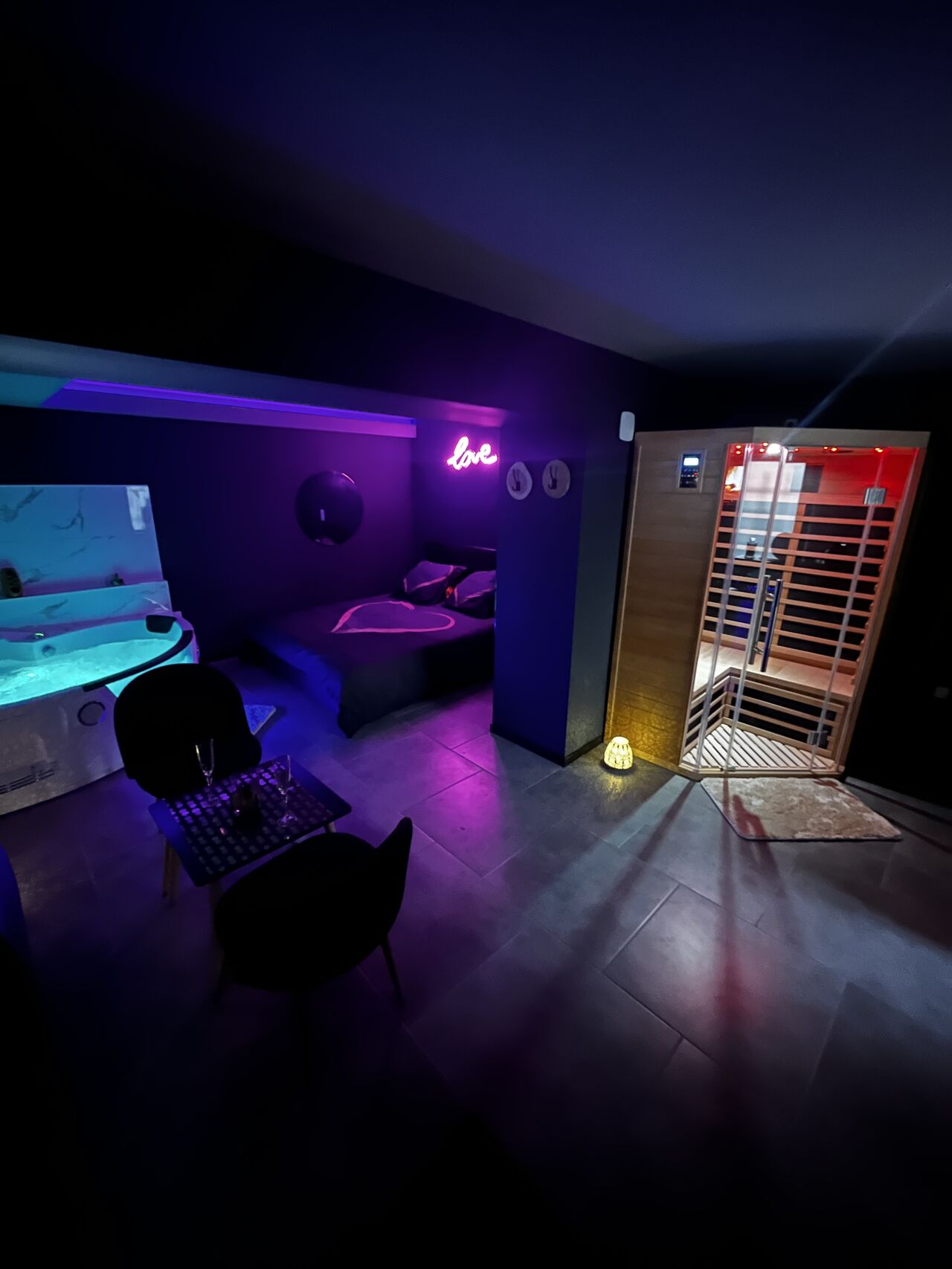 La suite CHILL AND LOVE est équipée d'un SAUNA et d'un SPA privatif avec un accès en illimité.